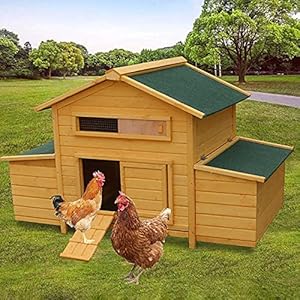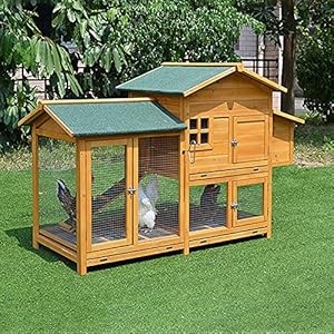 WUJI Großer Outdoor-Holz Hühnerstall Hinterhof Garten Tier Hühnerstall Nistkasten, Drahtzaun Indoor/Outdoor…