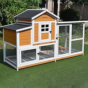 WUJI Schwerer Hühnerstall aus Holz im Freien Kaninchenstall Hühnerkäfig mit Belüftungstür, Abnehmbarem Tablett und Rampe…
