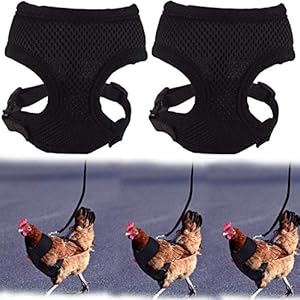 2pcs Hühner Leine,Verstellbares Hühner-Geschirr mit Leine, Elastisch, Bequem, Atmungsaktiv, Haustiergeschirr für Ente, Gans, Henne, für Lauftraining (Black)