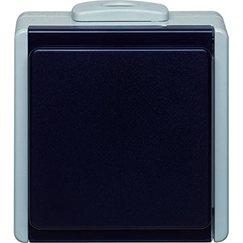 1-fache Feuchtraum Aufputzsteckdose, IP54,mit Klappdeckel, Blau Made in Germany