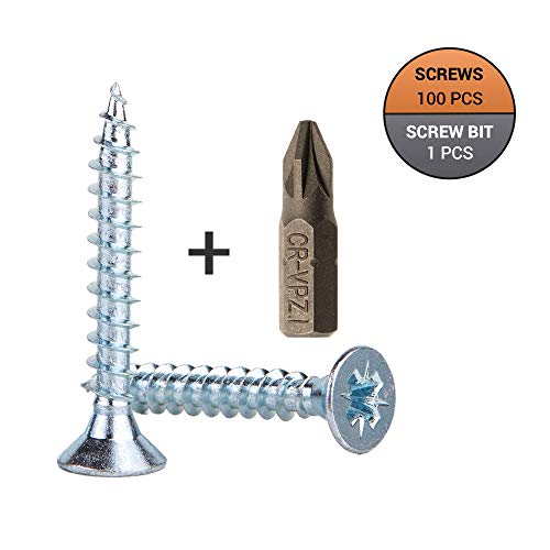 ✔️ Verpackung: 100 Bruchstück. Größe: 3,5 x 20 mm Schrauben unter Einsatz von Vollgewinde. 1 x Pozidriv-Schraubendreher-Bit im Lieferumfang enthalten