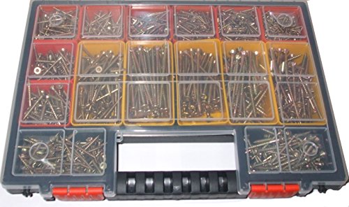 1275 tlg TORX Schraubenset im Koffer ========================= Spanplattenschrauben / Holzschrauben , gelb verzinkt, Deutsches Institut für Normung EN 14592, Lieferumfang: 1 Sortimentskoffer 200 Torx Eine Schraube anziehen 3,0 x 12 mm Vollgewinde 200 Torx Eine Schraube anziehen 3,0 x 16 mm Vollgewinde 150 Torx Eine Schraube anziehen 3,0 x 20 mm Vollgewinde 150 Torx Eine Schraube anziehen 3,0 x 25 mm Teilgewinde 100 Torx Eine Schraube anziehen 3,0 x 30 mm Teilgewinde 100 Torx Eine Schraube anziehen 3,5 x 35 mm, 100 Torx Eine Schraube anziehen 4,0 x 30 mm Teilgewinde, 100 Torx Eine Schraube anziehen 4,0 x 40 mm Teilgewinde 50 Torx Eine Schraube anziehen 4,5 x 50 mm Teilgewinde 50 Torx Eine Schraube anziehen 5,0 x 60 mm Teilgewinde 40 Torx Eine Schraube anziehen 5,0 x 80 mm Teilgewinde 25 Torx Eine Schraube anziehen 5,0 x 100 mm Teilgewinde 15 Torx Eine Schraube anziehen 5,0 x 120 mm Teilgewinde Material: Eisenlegierung verzinkt Färbemittel: gelb passiviert Gesamtinhalt: 1275 Eine Schraube anziehen + 6 TX-Bits