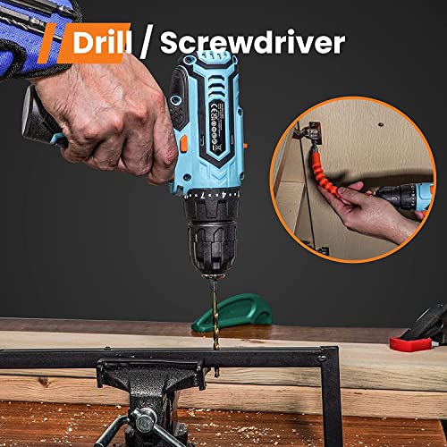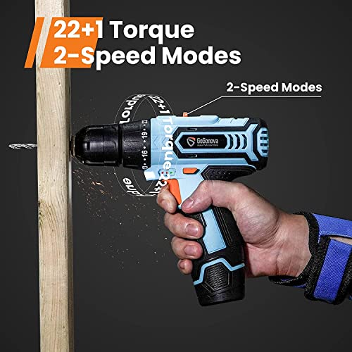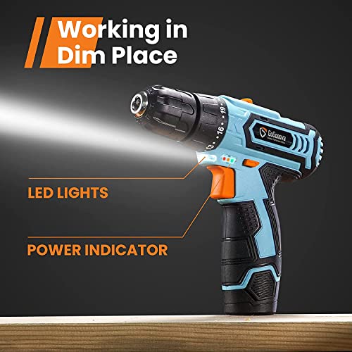 【MULTIFUNKTIONELL & EINSTELLBARE GESCHWINDIGKEITEN】GoGonova 12V Bohrschrauber mit 22+1 Drehmoment, 3/8 Schlüssellosem Bohrfutter, 2 anpassbarer Geschwindigkeiten (hoch und niedrig) ist passend für DIY, Hausarbeiten, Möbelmontage und Reparaturen. 1.5Ah Batterie und das kabelloses Design ermöglichen Sie, die Kabelstörungen zu unterbinden und den Bohrschrauber mehr adaptiv zu verwenden.