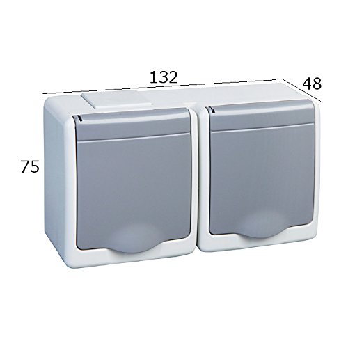 2-Fach Aufputzsteckdose IP44 16A/250V Schuko Aufputz Feuchtraum Steckdose GR