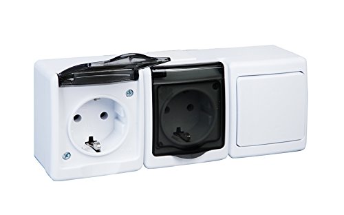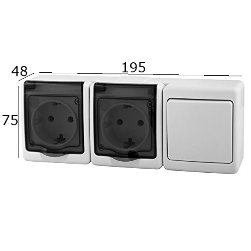 PAWBOL 2-Fach Aufputzsteckdose mit Schalter IP44 16A/250V Schuko Aufputz Feuchtraum Steckdose WE/DY