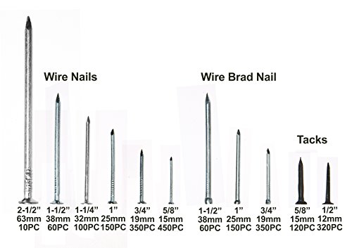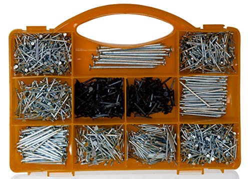 NÄGEL SORTIMENT: Mit 2.000 Fetzen kleinen Nägeln, großen Nägeln und Leistenstiften bzw. Drahtstiften in unterschiedlichen Größen und Riffelungen können Sie alle Rödeln verarbeiten. Nägel zum Bilder aufhängen sind ebenso enthalten wie Leistenstifte mit Senkkopf für flächenbündige Montage.