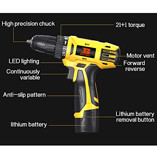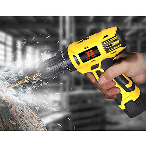 ◆ 2 Batterien und Schnellladung: Ein Funkbohrer, der mit einer Lithium-Ionen-Batterie mit 2 x 1500 mAh ausgestattet ist und 1 Stunde lang schnell aufgeladen wird. Wenn eine der Batterien obsolet ist, können Sie die Batterie bequem eintauschen. Eingebautes LED-Licht