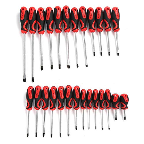 【AUSGEZEICHNETES DESIGN】 – Die Schraubendreher haben ein rutschfestes, sternförmiges Gummigriff- und Kreuzschlitzdesign. Ergonomischer Heft, angenehmes Handgefühl und sicherer Heft.