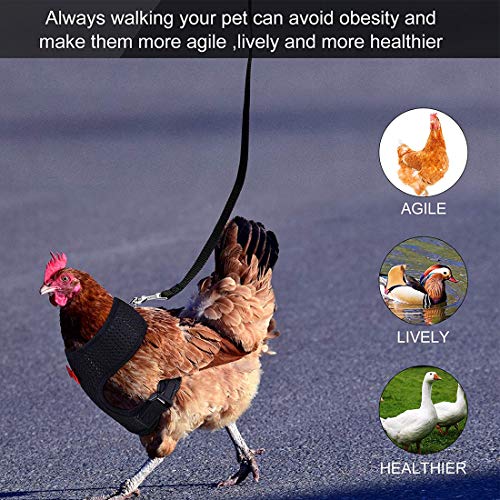 WAGENFUNKTION: Das bequeme Hühnertrainingsgeschirr ist sehr leicht, die kompakte Größe erleichtert das Tragen in Tasche und Tasche. Der Gurt ist einfach zu bedienen und dank seiner Schnellverschlüsse können Sie ihn problemlos untätig sein. Wenn Sie häufig mit Ihren Haustieren spazieren gehen, ist es besser, die Bewegung Ihrer Haustiere agiler und lebendiger zu Abrichten, ohne unnötige Belastungen