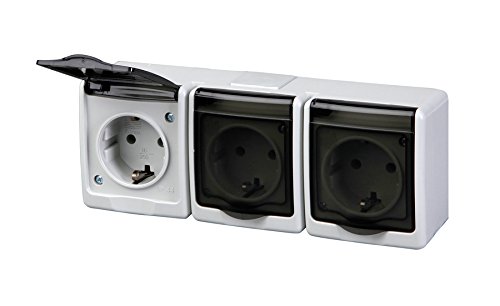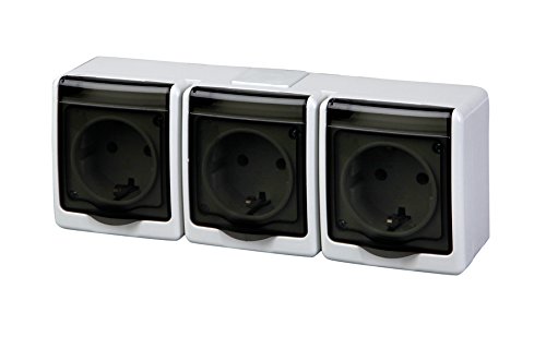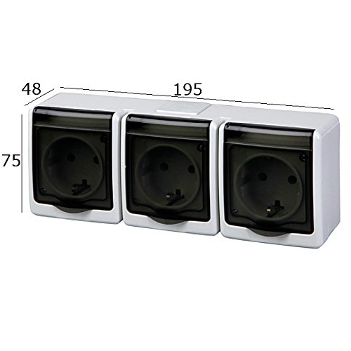 PAWBOL 3-Fach Aufputzsteckdose IP44 16A/250V Schuko Aufputz Feuchtraum Steckdose GR/DY