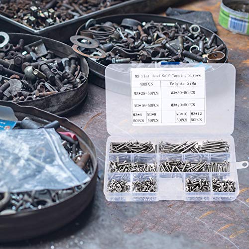【Was Sie bekommen】 Sie erhalten 400 Teil M3 selbstschneidende Schrauben in 8 Größen, was für Ihren täglichen Gebrauch ausreicht. Die selbstschneidende schrauben edelstahl Kits sind in einer Aufbewahrungsbox abgepackt, ohne sich um Beschädigungen oder Störungen sorgen zu müssen.
