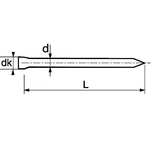 Abmessung: d x L (mm) = 1.6X30, dk (mm) = 1.7 – 2.7