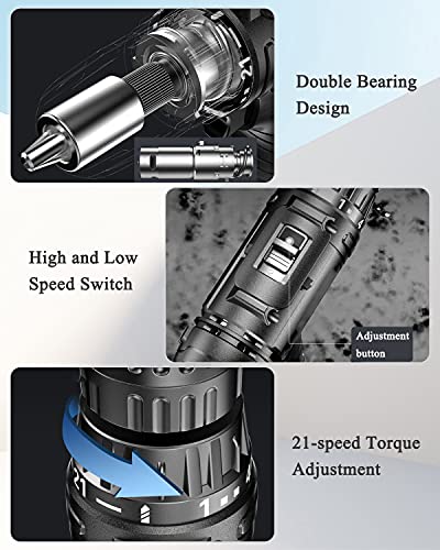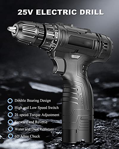 [25-V-Bohrmaschine] Die kabellose Bohrmaschine verfügt über ein Doppellager-Design mit Hoch- und Niedriggeschwindigkeitsfunktion, 21-Gang-Drehmomenteinstellung, Arbeitsrichtungseinstellung und eingebautem Kupfermotor, starker Leistung, ideal zum Einschrauben in Holz, Metall und Kunststoff .