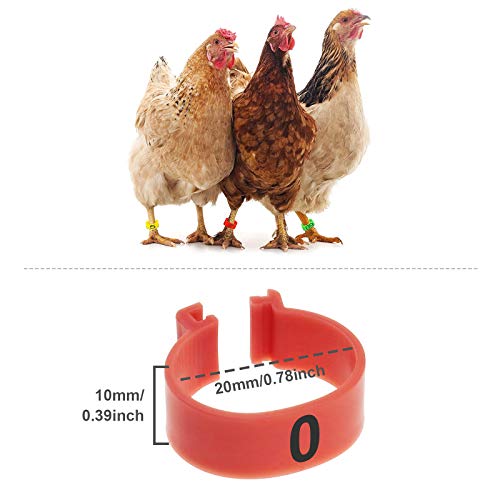 – Schlagringe: Die Fußringe sind in leuchtenden Farben mit Zahlen von 1 bis 9 erhältlich, die aufgedruckten Zahlen sind nicht leicht zu greifen, zu trockenreiben oder zu Fliehen und machen Ihr Huhn oder Vogel leicht zu finden.