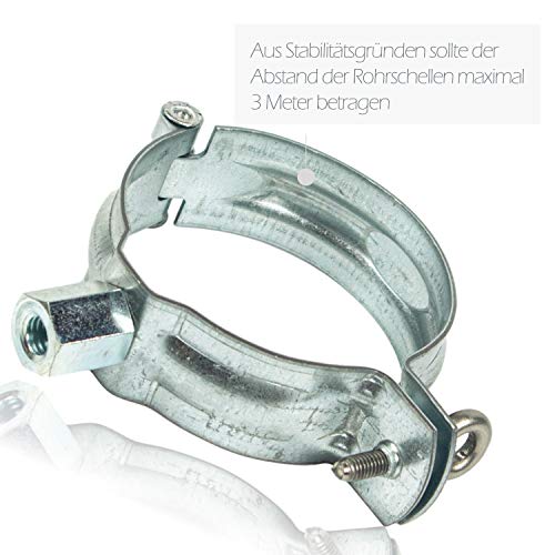6er Set Fallrohrschelle feuerverzinkt 76 mm mit M8/M10 Gewindeanschluss – Schraubrohrschelle verzinkt zur Befestigung…