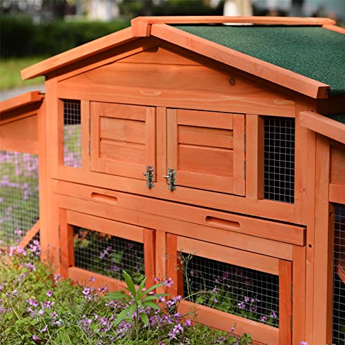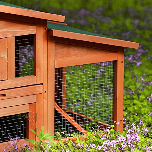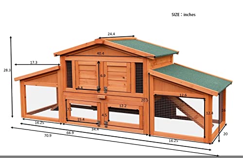 【GERÄUMIGE FLÄCHE FÜR MEHRERE KLEINE TIER】 Mit 70,8 Aufwand Platz in Längsrichtung ist dieser 2-stöckige Stall sowohl horizontal wie alias vertikal randvoll gefüllt, sodass Ihre 3-4 Hühner oder 2-3 Kaninchen sich mit 2 Spielen ausruhen oder entspannen können läuft