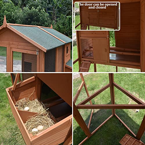🐓 【Spacious space】 Der Hühnerstall ist mit Nistkästen, Ruhekästen und Rampen ausgestattet. Ihr Geflügel kann in den Nistkästen Eier legen. Es gibt Schiebetüren und Rampen für einen einfachen Abruf zum erhöhten Stallbereich. Über der Rampe befinden sich Holzleisten, die verhindern, dass die Vögel ausrutschen und herunterfallen. Die Gittertüren sind so gestaltet, dass Sie Ihre Tiere beobachten können, ohne sie zu unterbrechen.