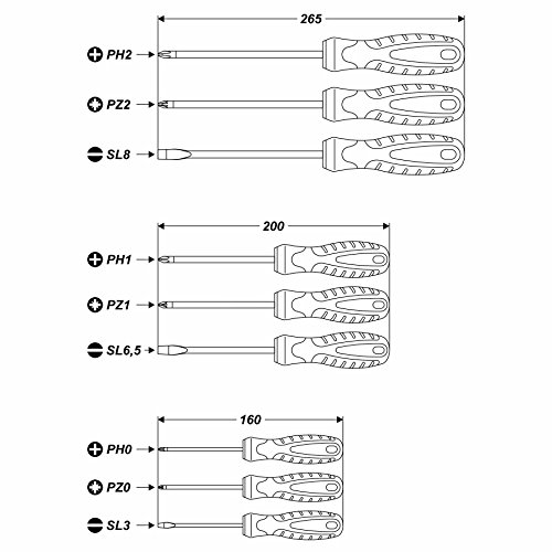 – Gesamtlänge große Schraubenzieher: 265 mm