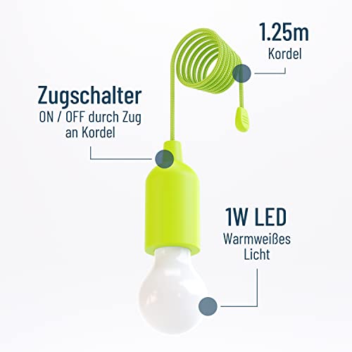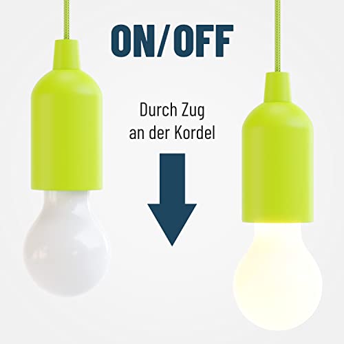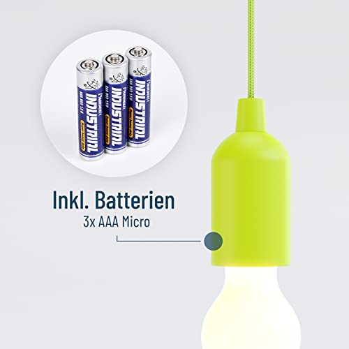 ABSINA LED Lampe batteriebetrieben grün – Pull Light 1W mit Zugschalter inkl Batterien – kabellose LED Leuchte warmweiß…