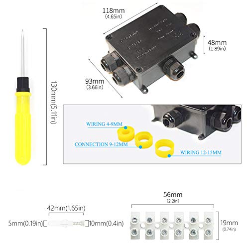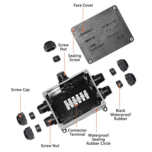 Einverstanden Abgedichtet:Gummidichtung und schraubenanzahl verspricht eine gute Abdichtung..Abzweigdose in spezieller kompakter Bauweise, Einfachere Verbindung dank des größeren Innenraum. In der Dose ist alias genug Platz zum Verdrahten.
