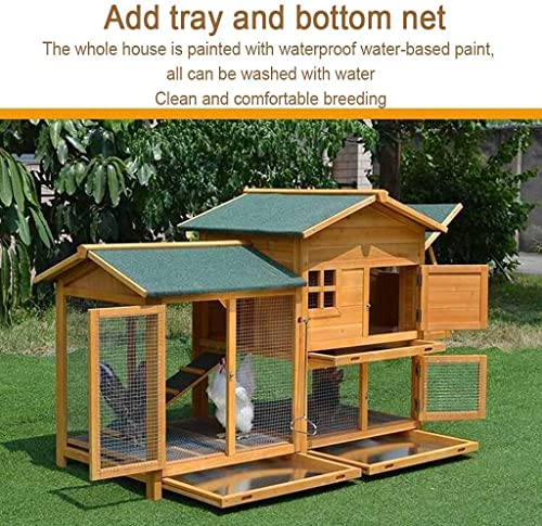 Ausreichende Accessoires: Tabletts und dicke Eisennetze werden am Boden des Hühnerhauses hinzugefügt, sodass sich keine Sorgen um die Reinigung von Haustieren machen müssen, und es gibt feste Holzstangen im Laufkäfig, Haustiere können sich ausruhen und spielen. das Die Treppentür des Haupthauses kann leicht geöffnet und geschlossen werden und tagsüber geöffnet werden, um Aktivitäten zu mildern und nachts in den Schlaf zu ermöglichen.