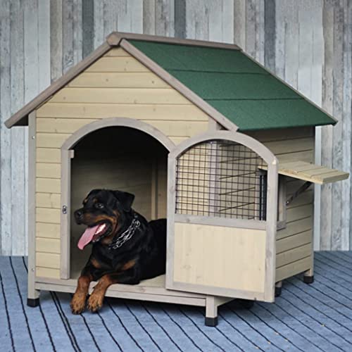 ? Langlebig und wasserdichtes Hundhaus Innenräume: Das gesamte Hundehaus verwendet hochwertiges Massivholzmaterial, ausgelassen und langlebig. Es wird im Freien platziert, um Wind und Regen zu umschiffen. Vulgo wenn es schneit, ist das Innenraum sehr warm.
