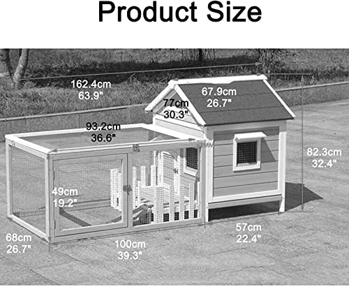 Panorama großer Weltraum Die Größe des Kaninchenkäfigs beträgt 162,4 x 68 x 82,3 cm/63,9 x 26,7 x 32,4 Aufschlag mit großer Landebahn und interner Aktivitätsraum. Damit können Sie leicht Tiere bestimmen und Sie können jede Bewegung durch den Stacheldrahtzaun beobachten.