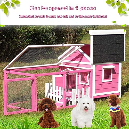Humanisiertes Kaninchen -Cageth -Dach besteht aus Asphalt und Sand, das schön und praktisch gleichzeitig korpulent und abgefahren ist. Die vier Seiten werden von robusten Säulen unterstützt, die eine starke Schimmer zur Tragfähigkeit haben. Gleichzeitig werden 4-6 Kaninchen angehoben. Der Käfig verfügt über obere und untere Tabletts und feste Holztreppen, die für Haustiere leicht zu bewegen und ein- und auszusteigen.