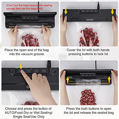 【Upgrade der Versiegelungstechnologie】- Das Vakumiergerät verfügt über 4 Modi: Trocken- und Nassmodus, manueller Modus, Versiegelungsmodus und Vakuummodus. Brauchbar für fast die Gesamtheit Lebensmittel: Fleisch, Gemüse, Obst, Nüsse, Rotwein, Kekse, Kartoffelchips usw. Sie müssen sich keine Sorgen mehr machen, dass die Inhaltsstoffe zerstört werden, wenn Sie den Vakuumierer verwenden. Verabschieden Sie sich von Lebensmittelverschwendung. Ein professioneller Vakuumierer ist ein Muss in der Küche.