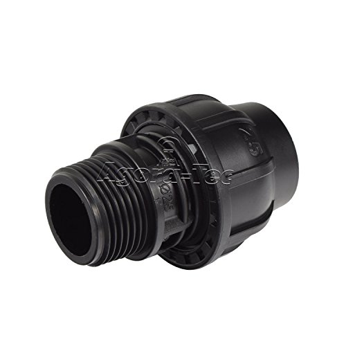 Agora-Tec PE-Fitting Kupplung 25 mm x 1 Zoll AG (33,3 mm) für PE-Rohr 25 mm SCHWARZ