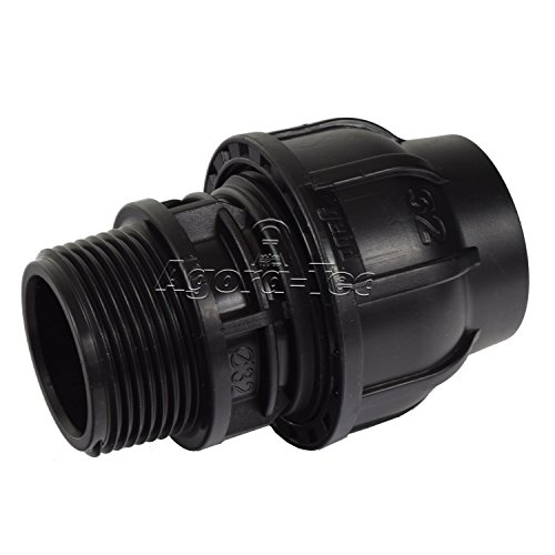 Agora-Tec PE-Fitting Kupplung 32 mm x 1 1/4 Zoll AG (41,9 mm) für PE-Rohr 32 mm SCHWARZ