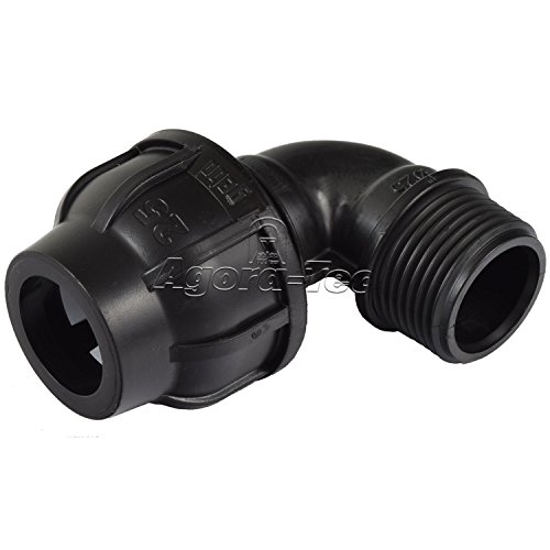 Agora-Tec PE-Fitting Winkel 90 Grad 25 mm x 1 Zoll AG (33,3 mm) für PE-Rohr 25 mm SCHWARZ
