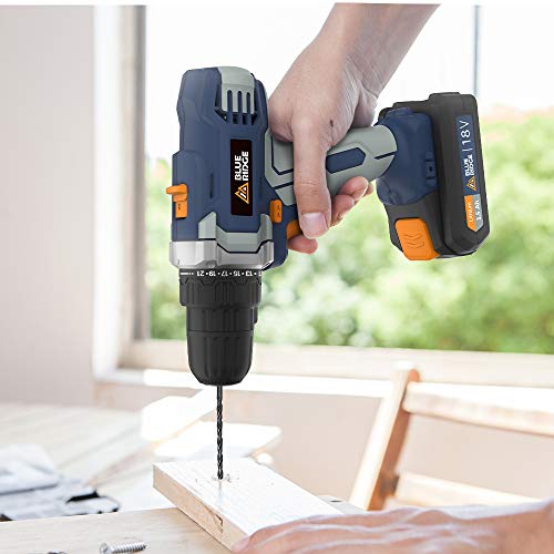 Akku Bohrschrauber Set,Schlagbohrer Akku 18V Kabelloser Akkuschrauber,BLUE RIDGE Akku Schlagbohrschrauber mit 2 akkus…