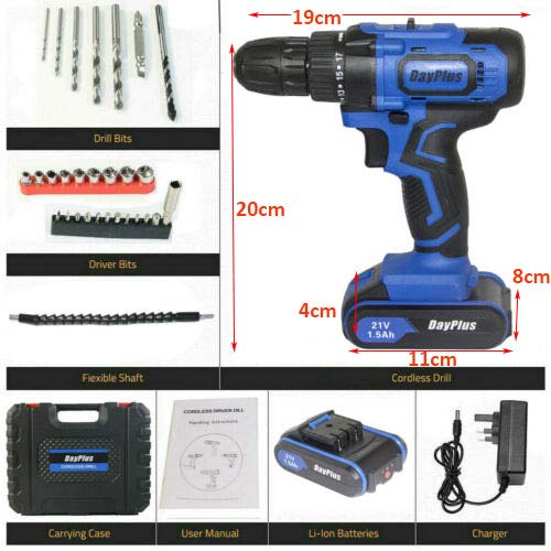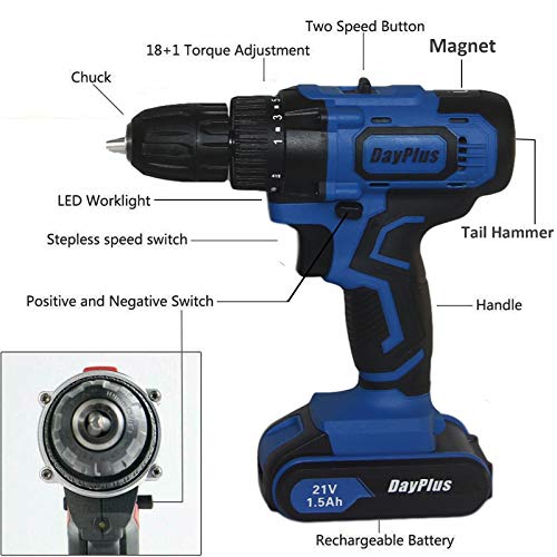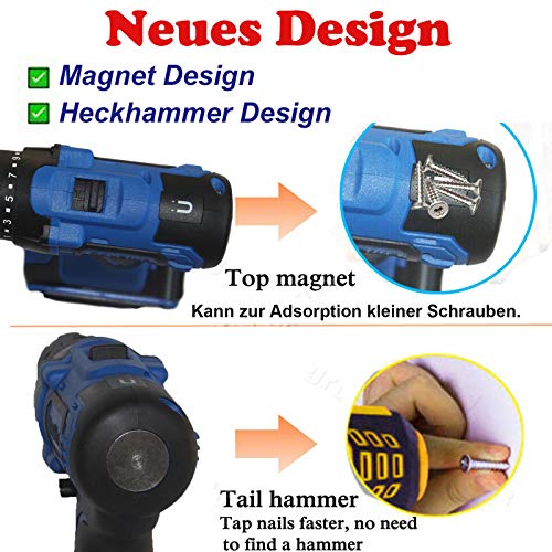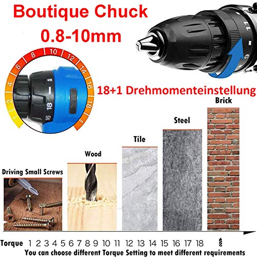 Leistungsstarker Akkuschrauber/Akku-Bohrschrauber: 21-V-Akku-Bohrschrauber mit Drehmomenteinstellung 18 + 1, der eine präzise Steuerung für das Bohren in Stein, Holz, Metall, Kunststoff und alle Schraubaufgaben bietet. Sie sind genug für Sie, um die meiste Paper zu anhaken.