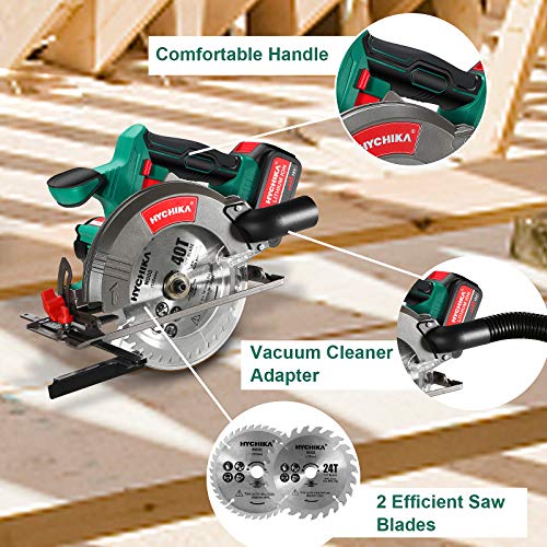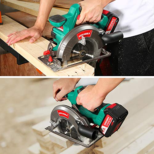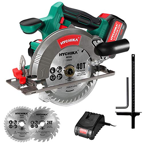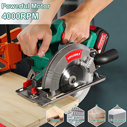 Akku Handkreissäge, HYCHIKA 18V Kreissäge mit 4.0 Ah Wiederaufladbare Batterie, 2xSägeblättern 165mm, Max Schnitttiefe…