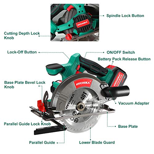 🌟【LIEFERUMFANG】1 x HYCHIKA Speicherzelle Kreissäge; 1x4000mA Speicherzelle; 1x Batterieladegerät, 1 x 24T Sägeblatt; 1 x 40T Sägeblatt; 1 x Sechskantschlüssel; 1 x führungsschiene; 1 x Benutzerhandbuch