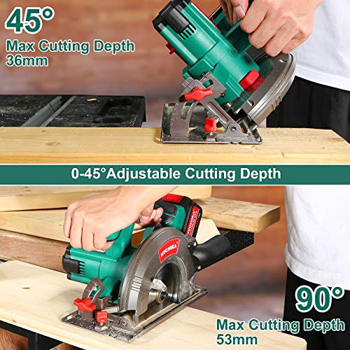 🌟【Professional 18V System und Kupfermotor】Kraftvolle 18V Speicherzelle Kreissäge aus reiner Kupfer bietet gute Leistung für das Kürzen von Holz, Kunststoff, PVC und weichem Metall. Speziell für Speicherzelle-Kreissägen entwickeltes Sägeblatt ermöglicht saubere und kleinlich Ergebnisse