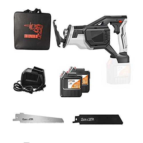【LIEFERINHALT】 1 x Säbelsäge, 2 x 258TV 30000mAh Batterien, 1 x Schnellladegerät, 2 x Sägeblätter, 1 x Benutzerhandbuch