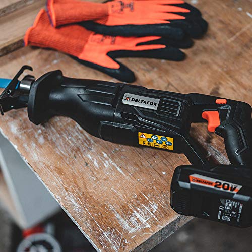 DELTAFOX 20V Akku Säbelsäge ? SDS Schnellspannfutter ? Arbeitslicht ? Ausziehbare Fußplatte ? 2 Ah Akku…
