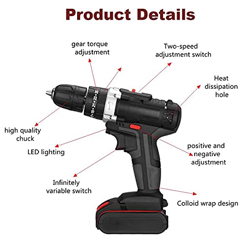 Sie erhalten 1 x Schlagbohrmaschine,Bohrzubehör, 2x 1500mAh Lithium-Ionen Akku, 1 x Schnellladegerät,1x Werkzeugtasche, 1 x Tragetasche, 1 x Benutzerhandbuch
