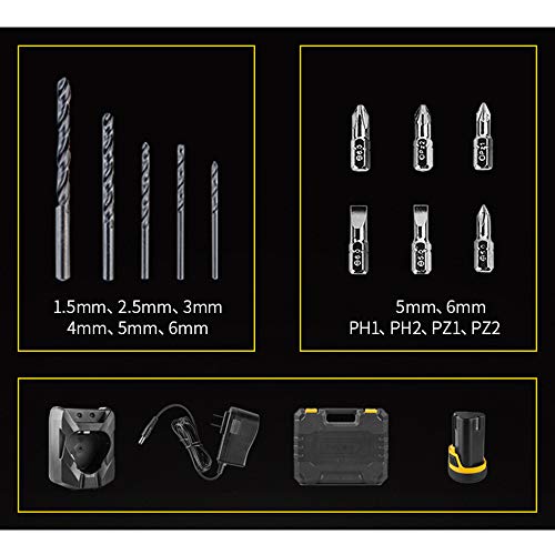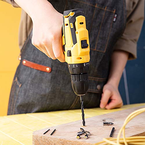 ◆ 2 Batterien und Schnellladung: Ein Funkbohrer, der mit einer Lithium-Ionen-Batterie mit 2 x 1500 mAh ausgestattet ist und 1 Stunde lang schnell aufgeladen wird. Wenn eine der Batterien hohl ist, können Sie die Batterie bequem berichtigen. Eingebautes LED-Licht