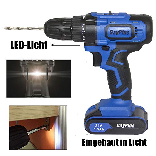 Leistungsstarkes Bohrschrauber-Set: 21-V-Akku-Bohrmaschine mit einer Drehmomenteinstellung von 18 + 1, die eine präzise Steuerung für das Bohren in Stein, Holz, Metall, Kunststoff und alle Schraubaufgaben bietet. Sie sind genug für Sie, um die meiste Ausarbeitung zu ad acta legen.