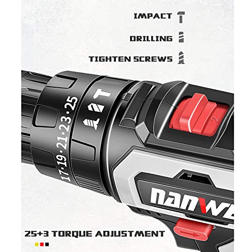 25+ 1 Drehmomentwählschlupf-Steuerring verhindert übermäßiges Anziehen oder Abkuppeln von Schrauben oder übermäßiges Bohren. LED-Leuchten können in schwach beleuchteten Bereichen hilfreich sein.