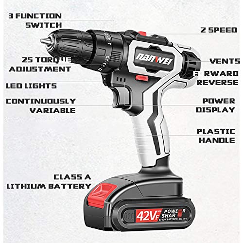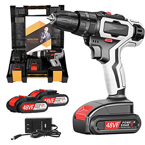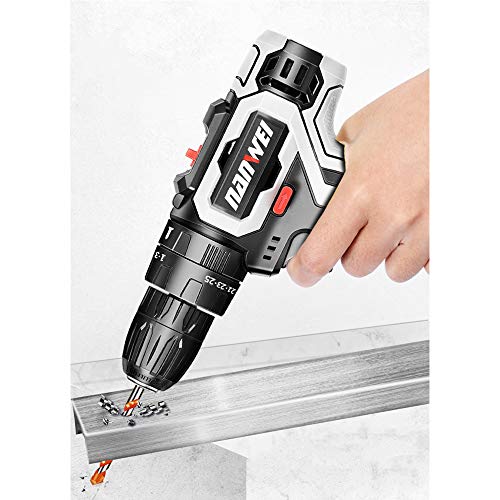 ◆ 2 Batterien und Schnellladung: Ein Funkbohrer, der mit einer Lithium-Ionen-Batterie mit 2 x 1500 mAh ausgestattet ist und 1 Stunde lang schnell aufgeladen wird. Wenn eine der Batterien trivial ist, können Sie die Batterie bequem modifizieren. Eingebautes LED-Licht