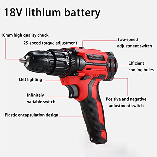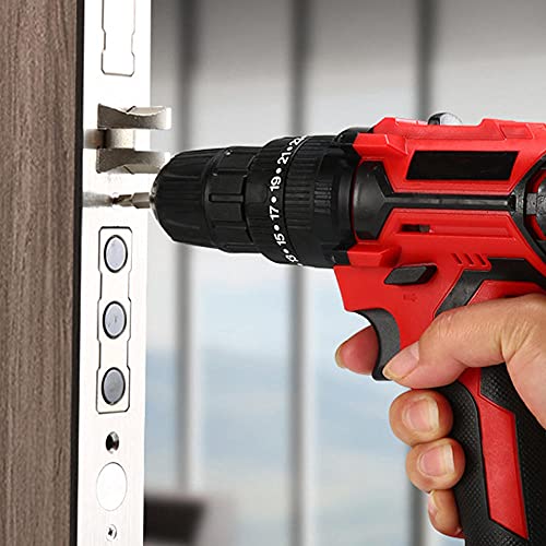 25 + 1 einstellbare Kupplung 2-variable Geschwindigkeit und 35n.m Drehmoment: Der schnurlose Bohrer verfügt über 25 verschiedene Drehmomenteinstellungen und Bohrfunktionen. Hohe und niedrige Doppelgeschwindigkeit. Maximales Drehmoment 35n.M für Schrauben. Es kann verwendet werden, um Holz, Metall, Kunststoff und sämtliche Aktivitäten eines Schraubendrehers zu bohren.