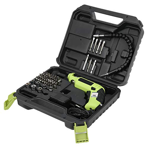 Dieser 3,6-V-Akkuschrauber kann in engeren Arbeitsbereichen wirken. Verwenden Sie es wie rechtwinkligen Schraubendreher oder drücken Sie einen Knopf am Heft, um das Triebwerk trendig zu drehen.
