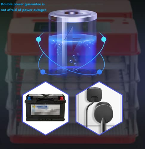Dual-Stromversorgung: Dual Power garantiert sorgenfreier Stromausfälle, sobald die Inkubation beginnt, kann er nicht angehalten werden. Die Dual-Power-Abart unterstützt die batteriebetriebene Inkubation, die sicherer ist