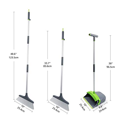 Der Besen hat die Abmessungen 87,12 x 22,6 x 8,63 cm (L x B x H); die Kehrschaufel misst 25,9 x 24,89 cm (B x T)