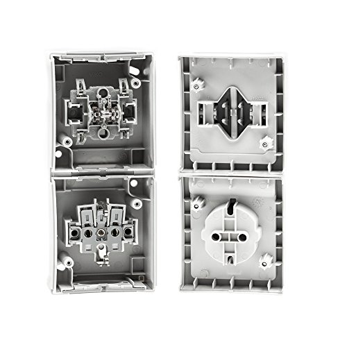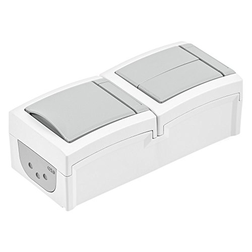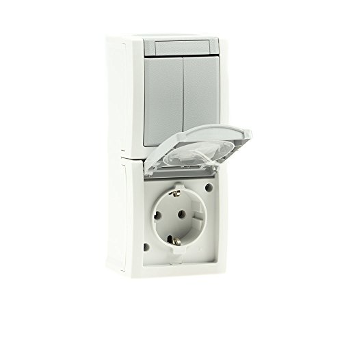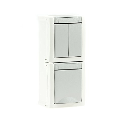 Aufputz Feuchtraum Steckdose / Serienschalter Kombination senkrecht IP54, Modell Pacific, grau