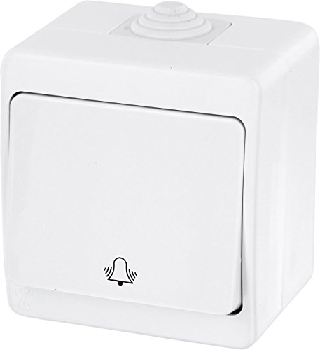 Aufputz Feuchtraum Taster mit Klingel-Symbol IP54 – aus der Schalterserie G1 reinweiß